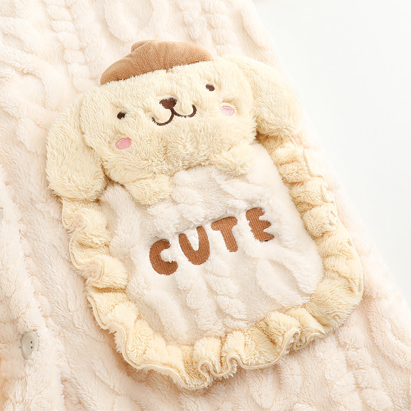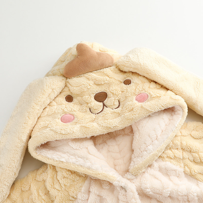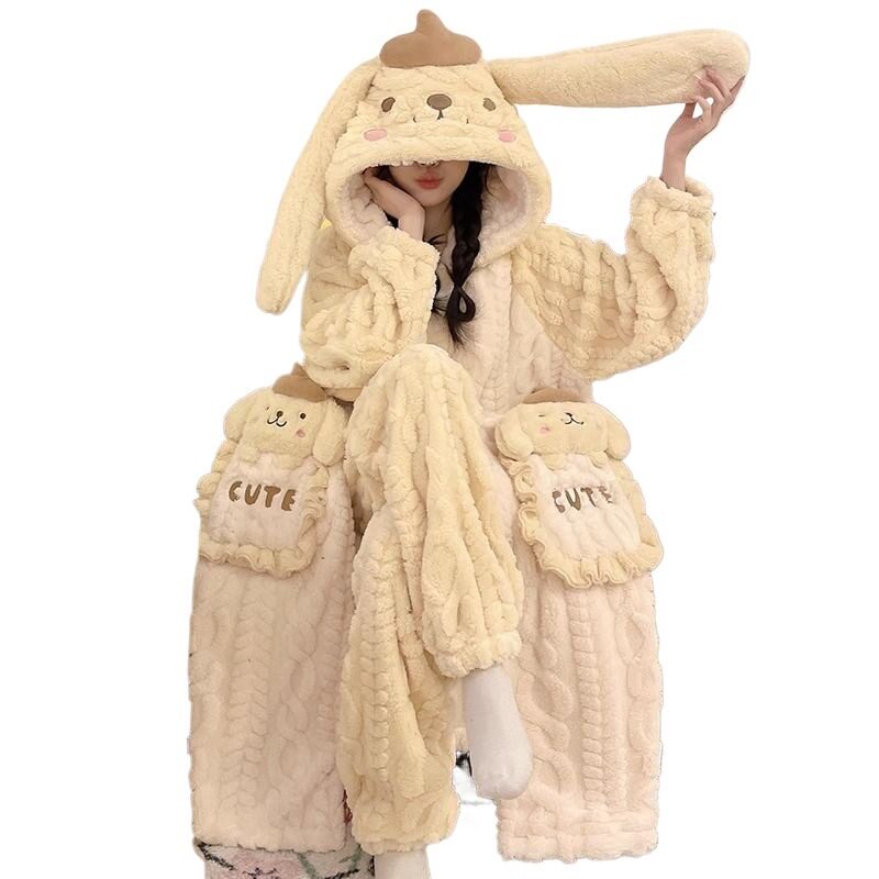 yso【酷猫系列】睡衣女秋冬新款毛绒长款连帽加厚保暖开衫睡袍D