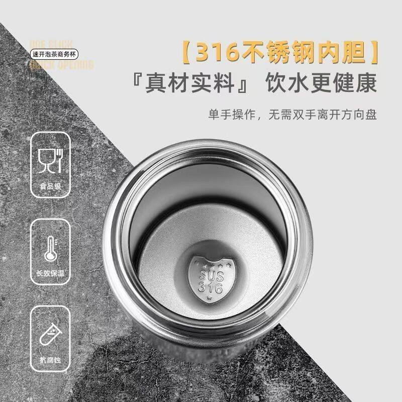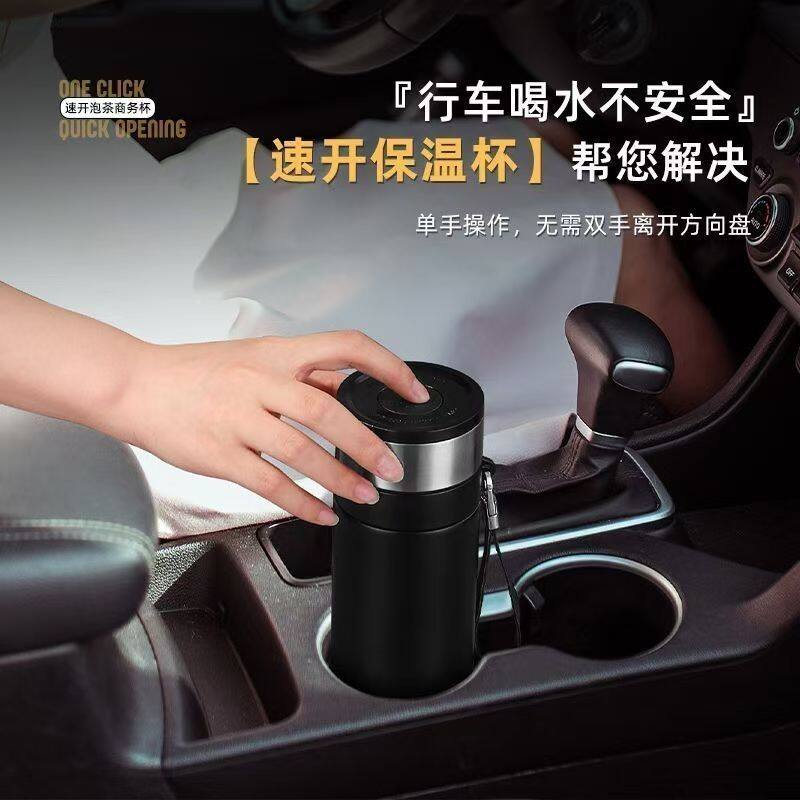 高端车载一键开盖保温杯316不锈钢茶水分离杯茶杯便携茶仓食品级