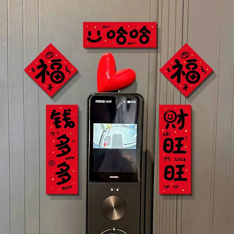 2026新年装饰品马年门锁磁吸迷你小对联智能锁入户门贴纸春联