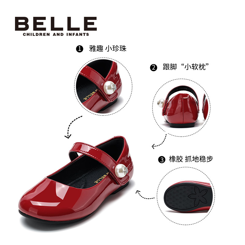百丽童鞋女童公主鞋春季新款小女孩演出舞蹈鞋儿童单鞋宝宝皮鞋