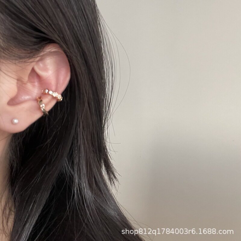 异彩王子文同款锆石耳骨夹女无耳洞无痛双层法式小众耳饰酷男