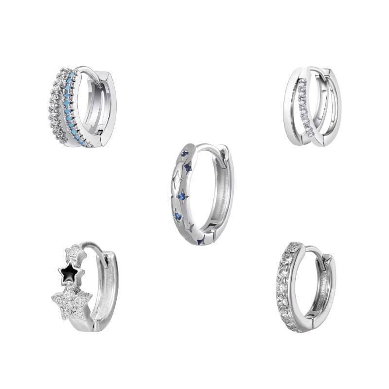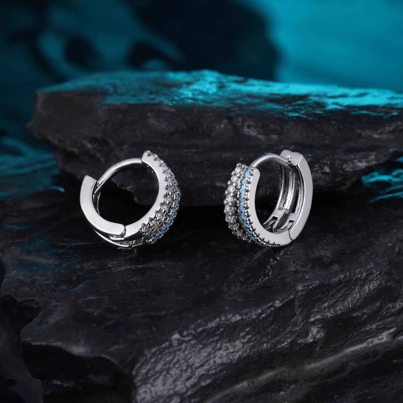 海蓝色钛钢耳环女款人工锆石耳圈轻奢耳扣男圈圈素圈耳钉秋冬耳饰