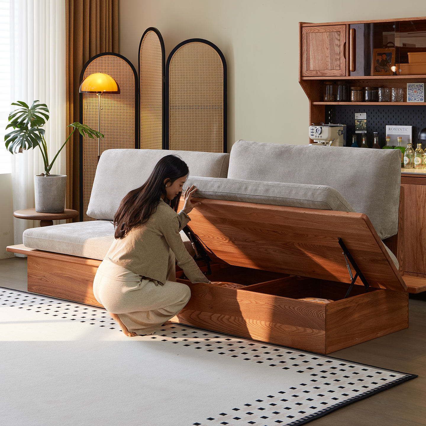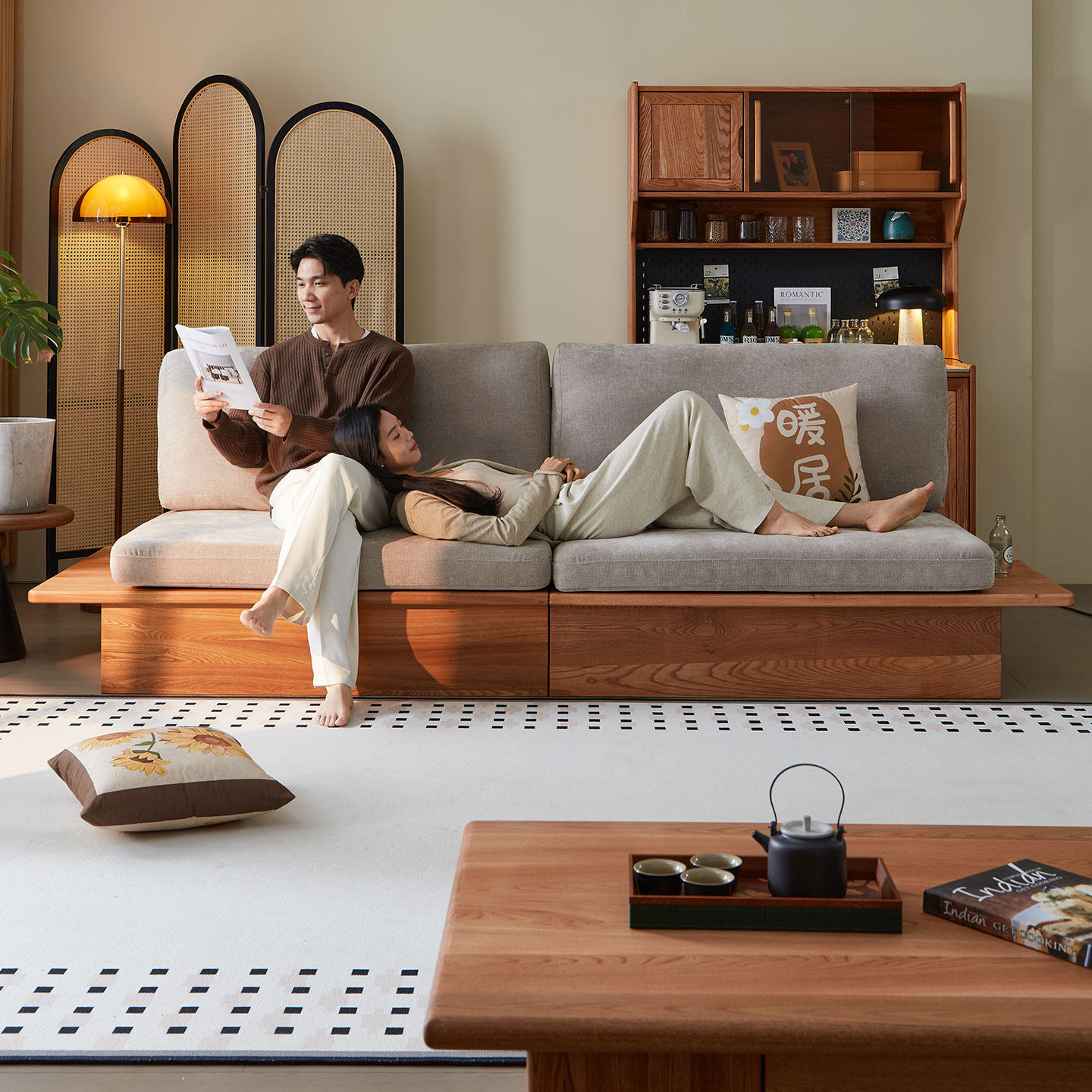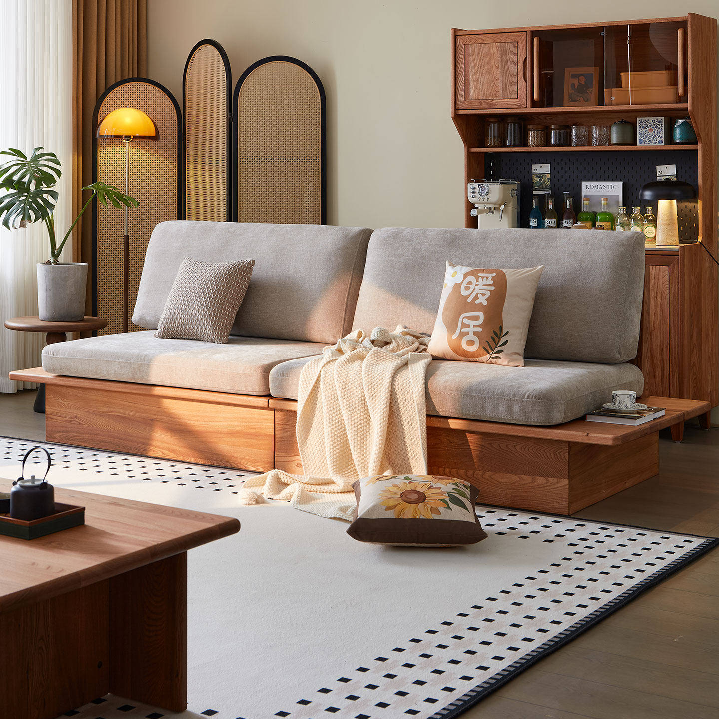 优尚雅轩北欧原木大板实木沙发2025新款客厅小户型可储物地台沙发