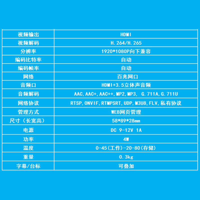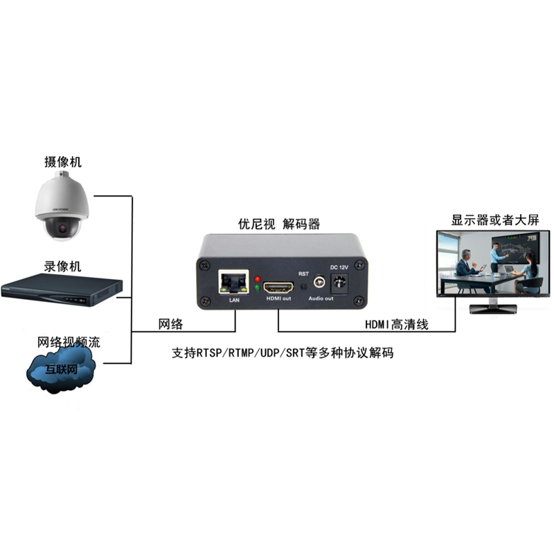 JM1000网络流高清视频解码器 手机推流RTMP/RTSP监控摄像机转HDMI