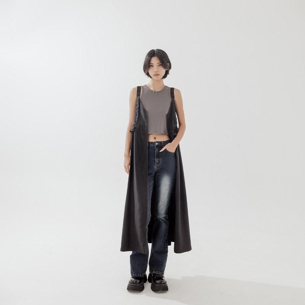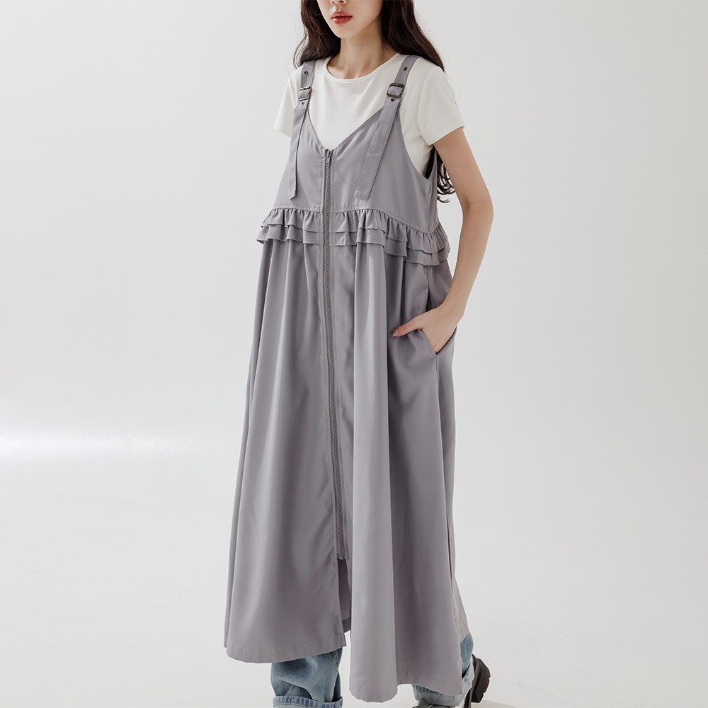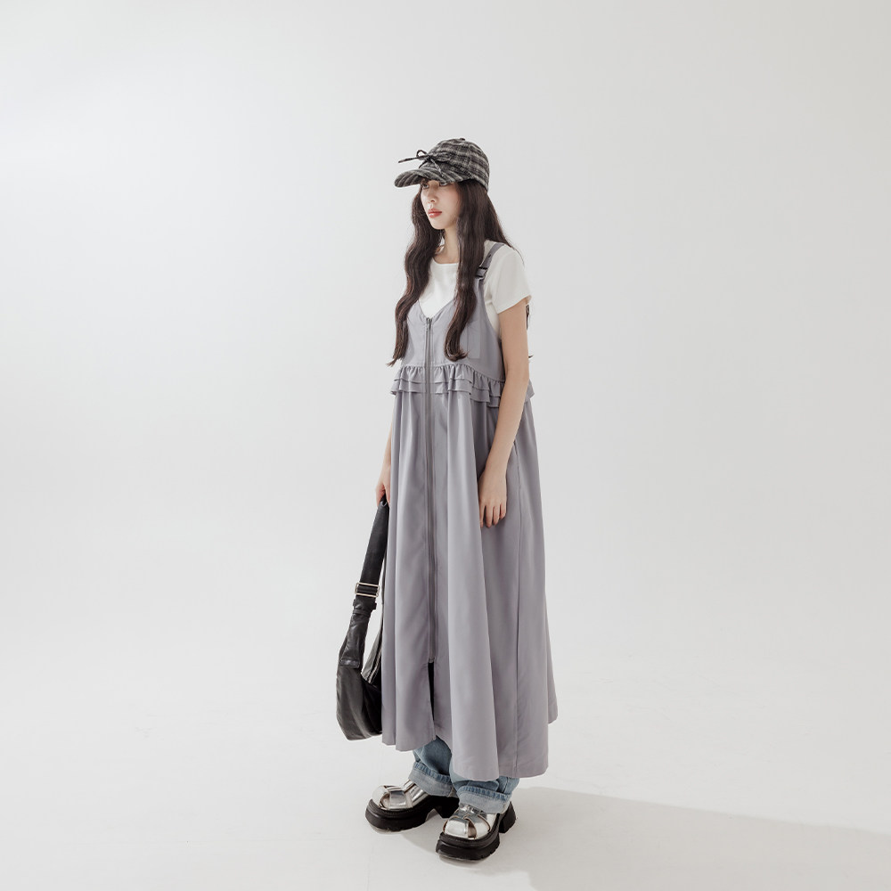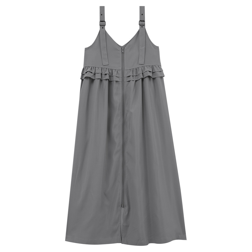 QUEENSHOP 2025秋冬新品女装前后两穿拉链荷叶吊带连衣裙01087124