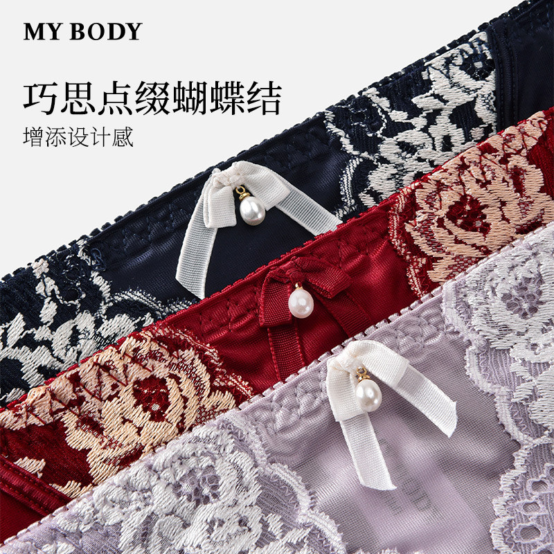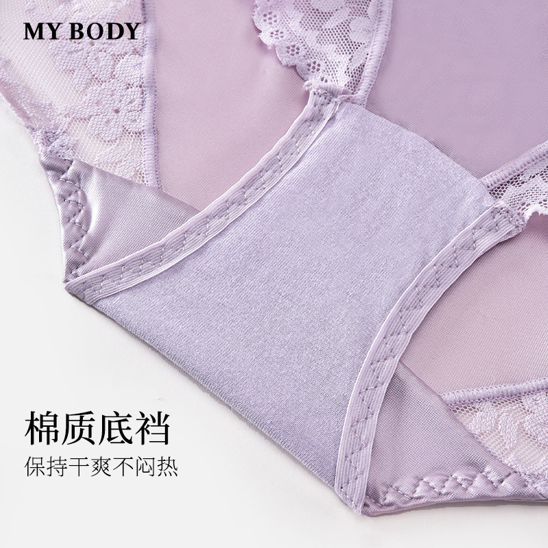 3件199|商场同款MYBODY新款女士内裤法式蕾丝高腰收腹包臀平角裤