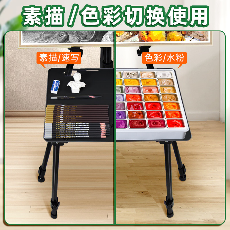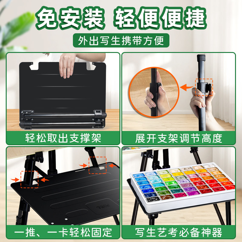 马利牌画架可折叠伸缩便携画板支架工具美术生专用素描写生便携式金属三角架水粉颜料托盘户外写生画画铁架子