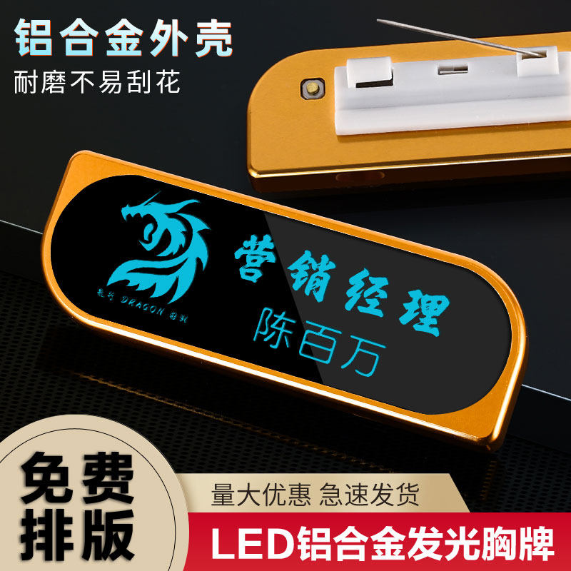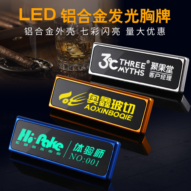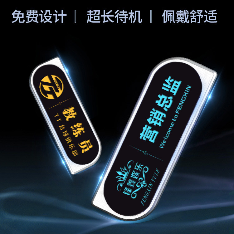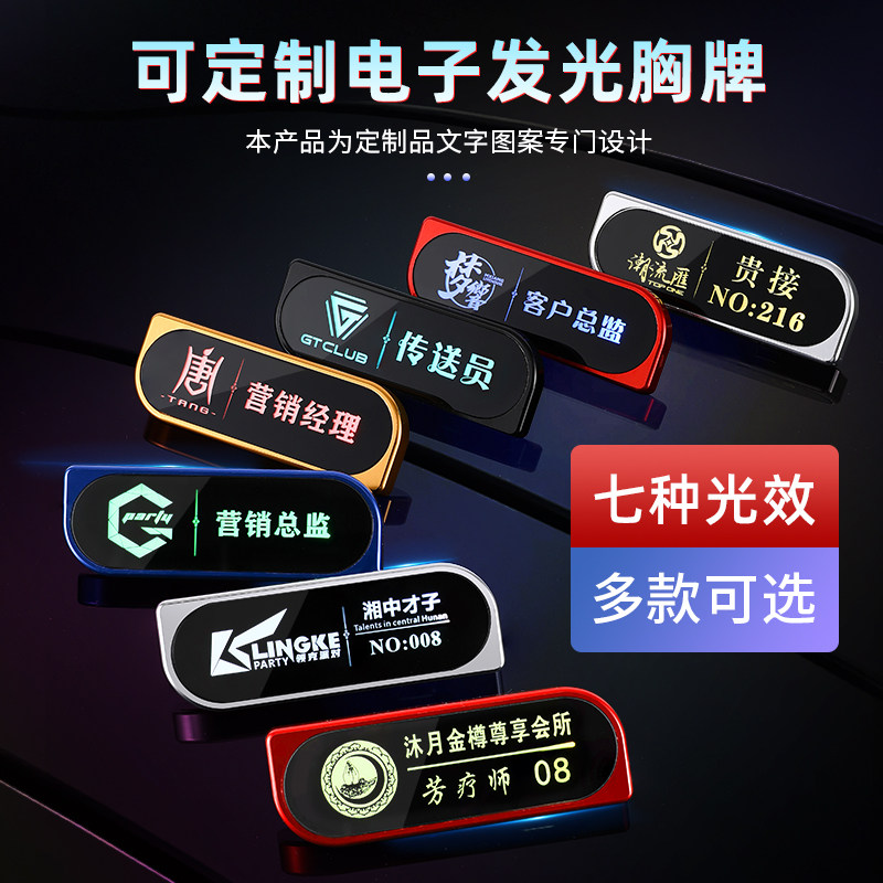 led发光工牌胸牌酒吧KTV夜场高档定做ktv工牌七彩发光工作牌定制