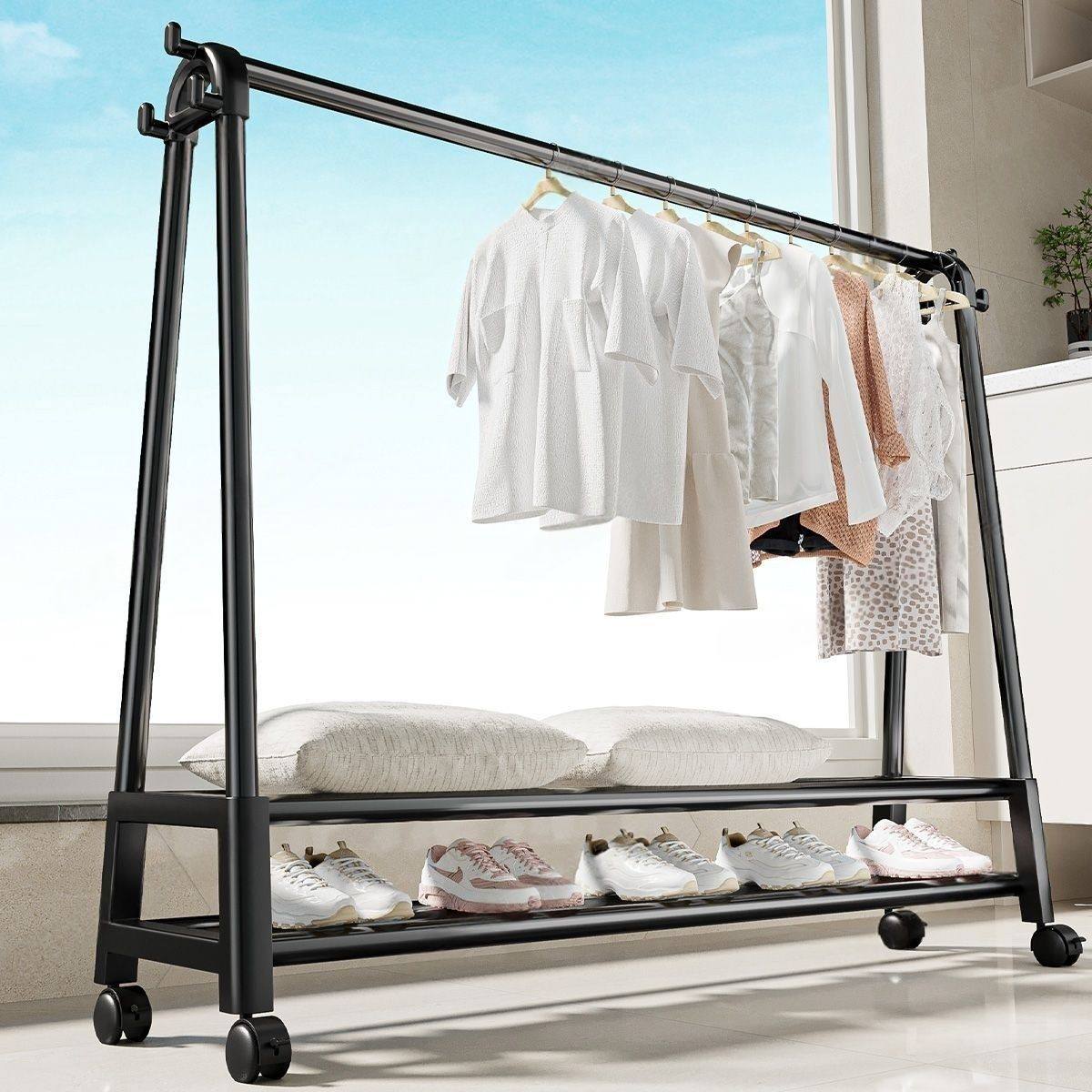落地家用大容量卧室衣帽架宿舍简易室内挂衣架子阳台凉衣服杆