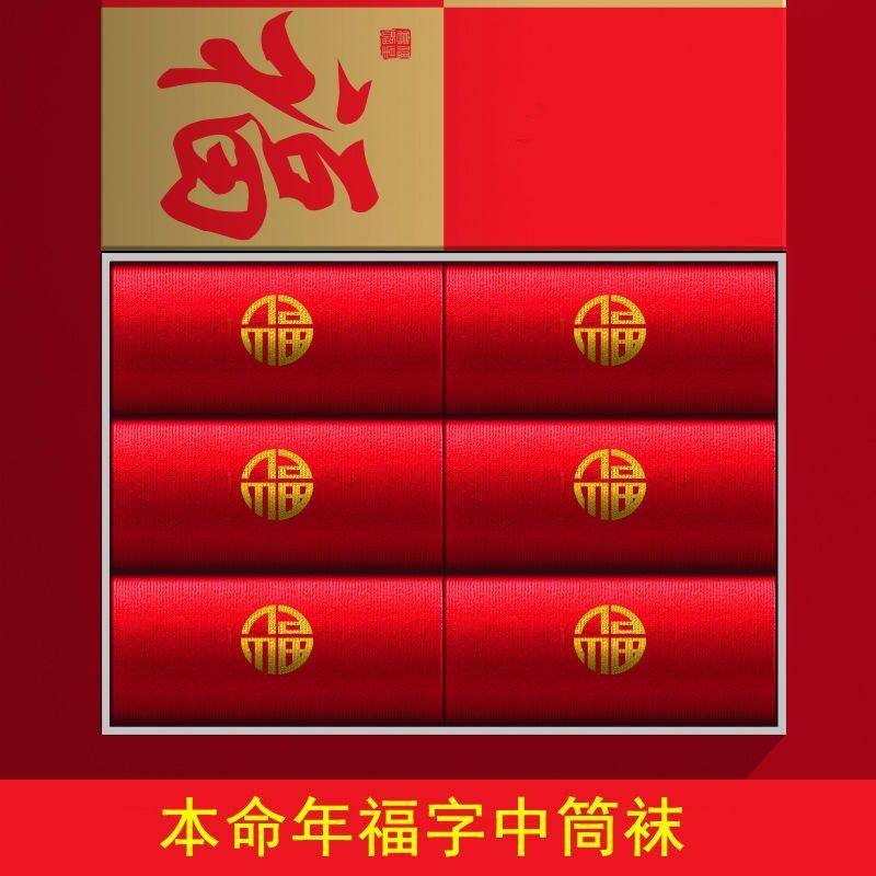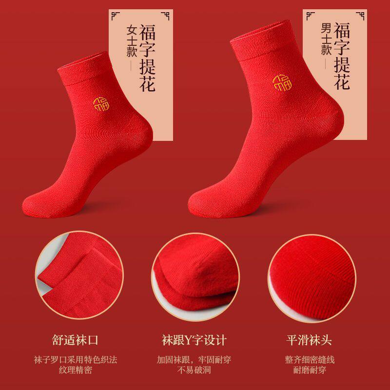 本命年大红袜子马年红袜福字袜结婚男女情侣棉袜中筒秋冬款老年人