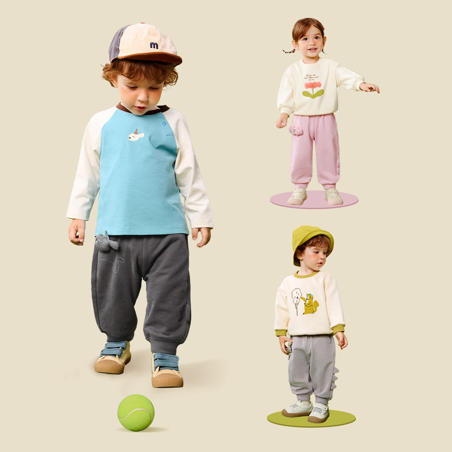 [可调节腰头]迷你巴拉巴拉男女童裤子春新品宝宝亲肤萌趣长裤