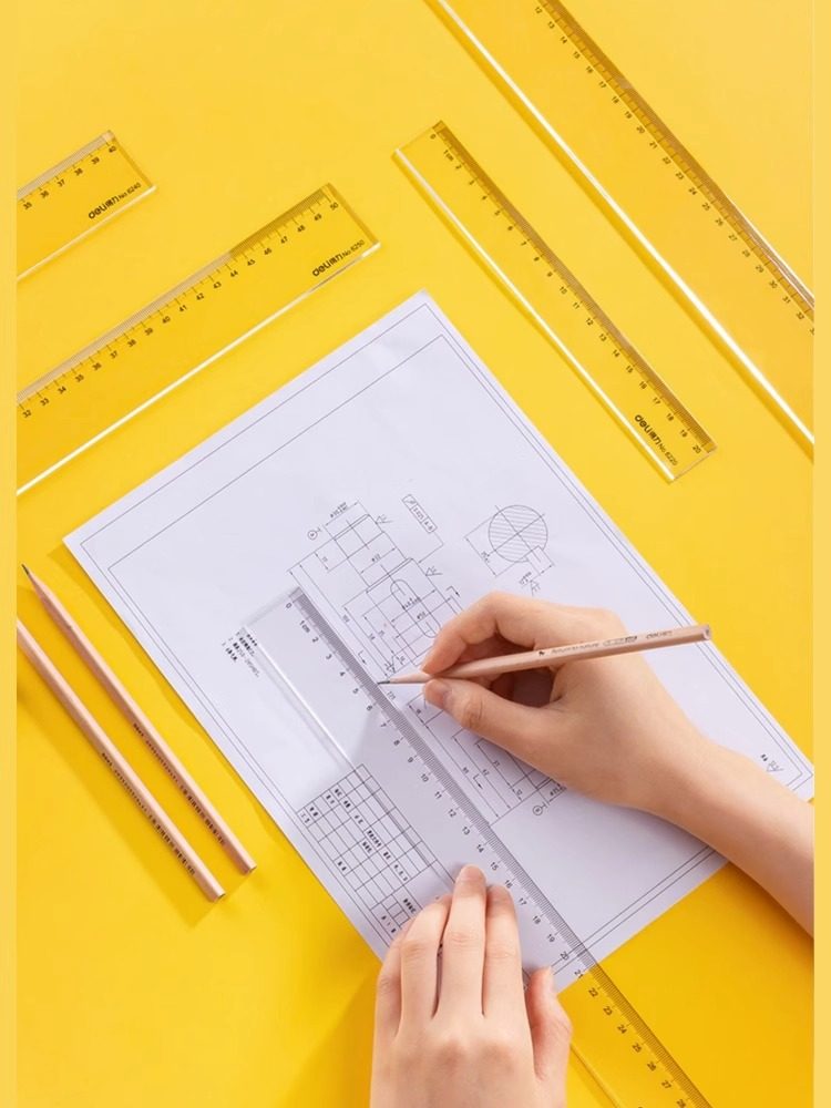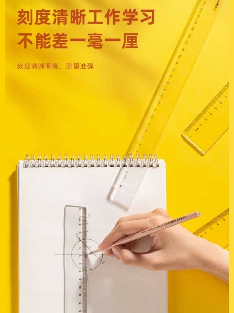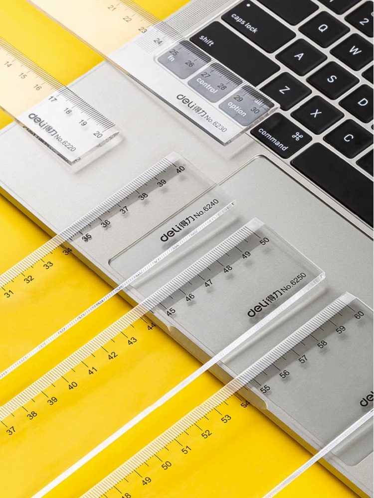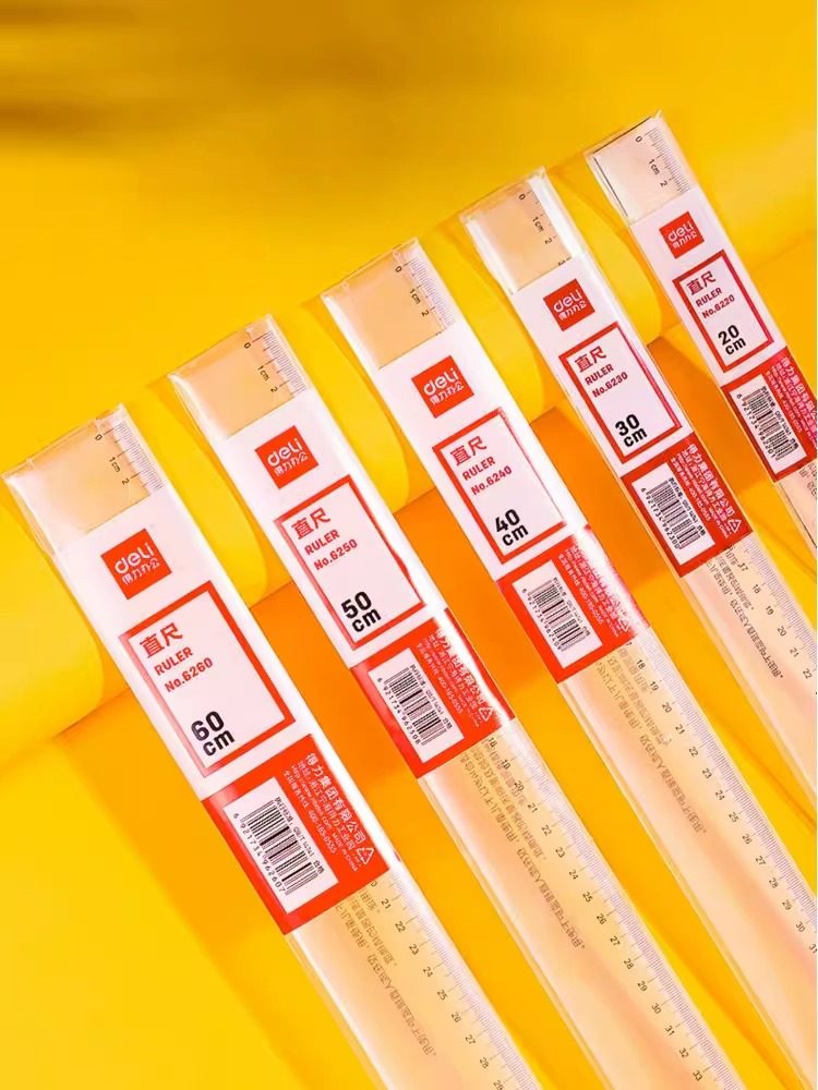 得力40cm/50cm直尺 透明塑料直尺办公学生绘图制图刻度尺测图绘画工程美术学生格尺1米长尺 有机玻璃直尺