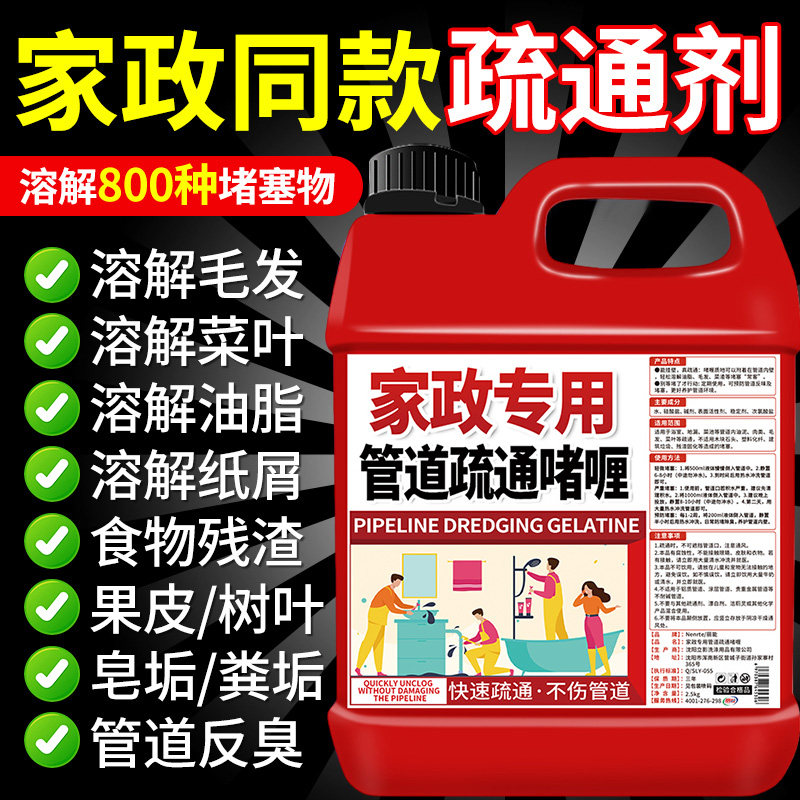 5斤管道通疏通剂强力饭店厨房下水道厕所马桶地漏去油污溶解神器