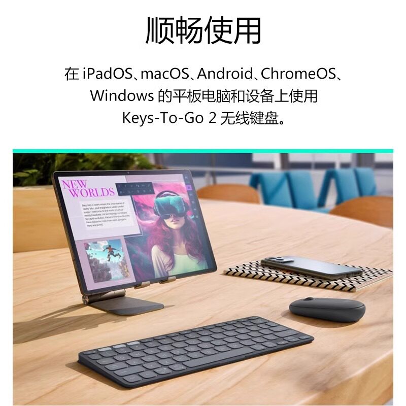罗技Keys To Go2无线蓝牙键盘适用iPad安卓平板电脑专用键盘拆包