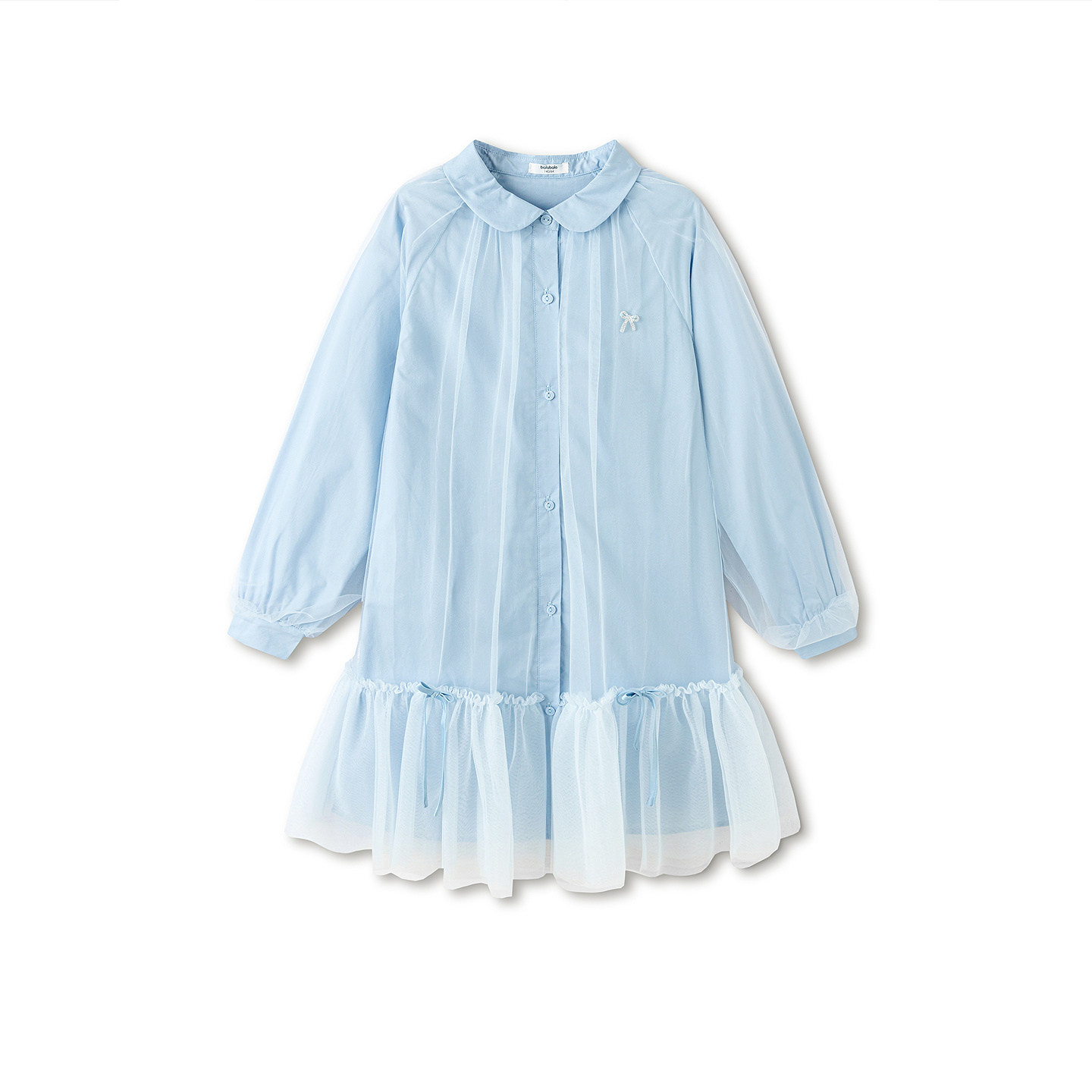 纯色衬衫网纱连衣裙,甜美蝴蝶结装饰