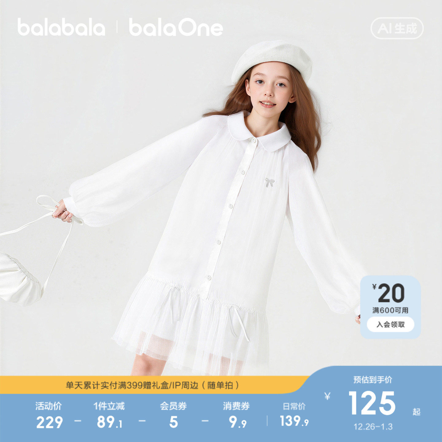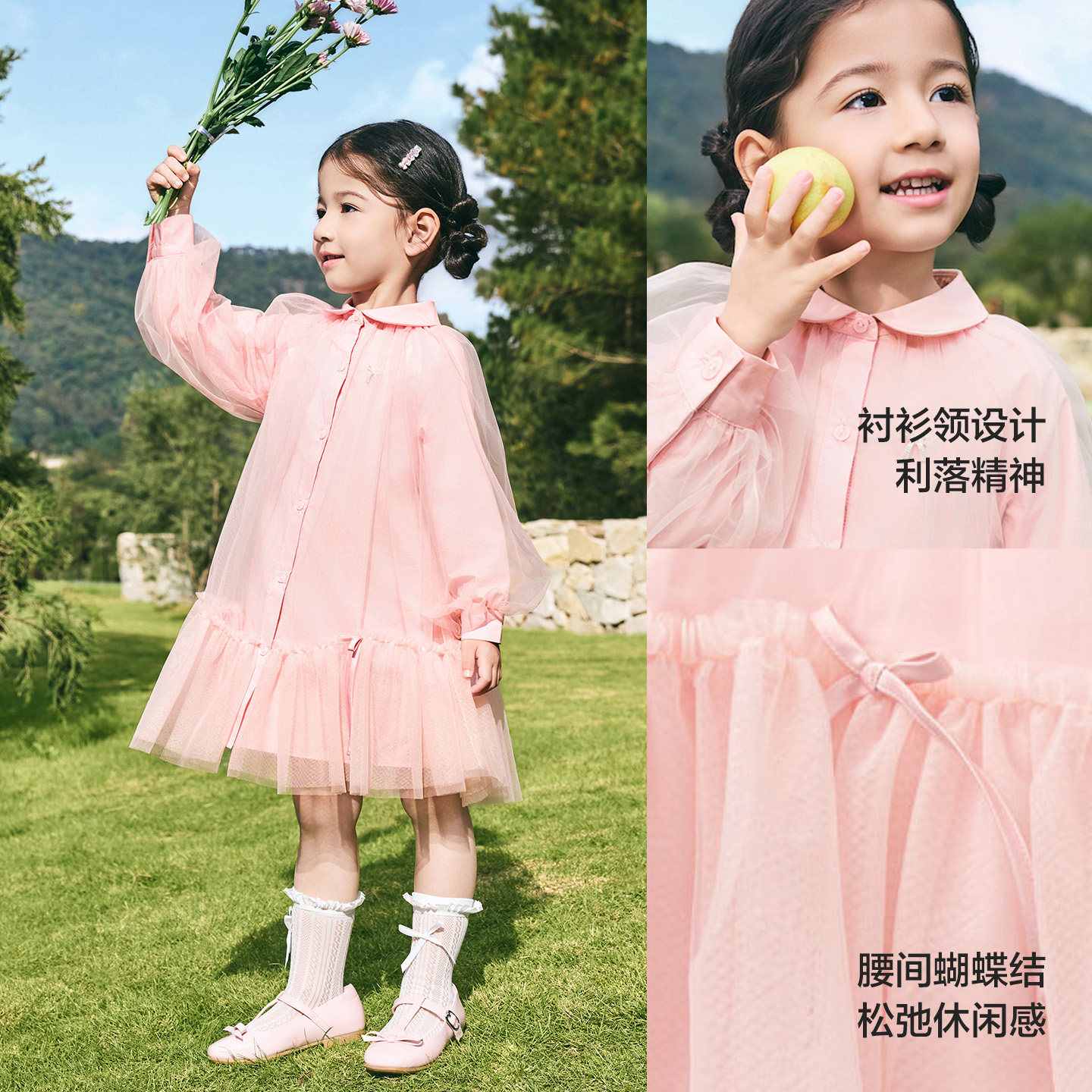 巴拉巴拉童装儿童连衣裙女童2026新款春装polo公主学院衬衫网纱裙