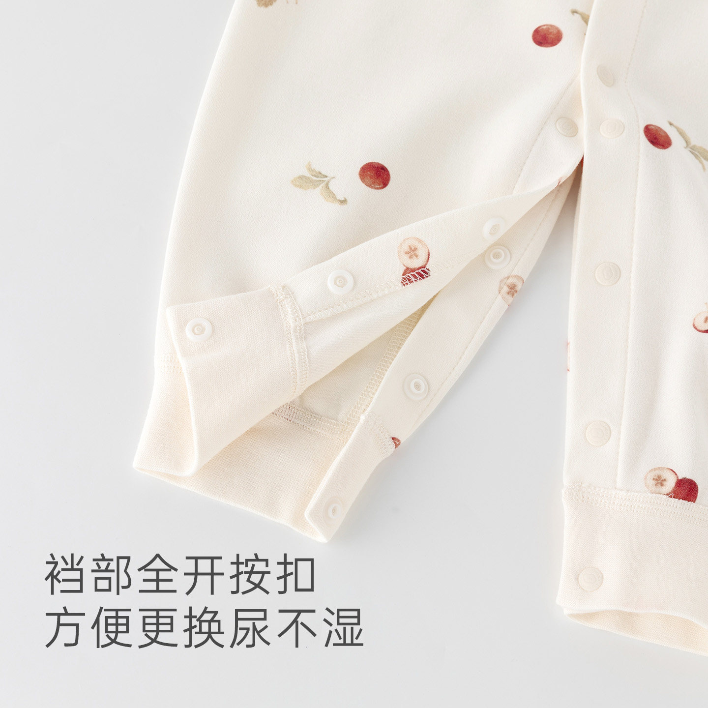 木生棉婴儿长袖连体衣服秋冬季新生宝宝纯棉居家睡衣无骨爬服哈衣