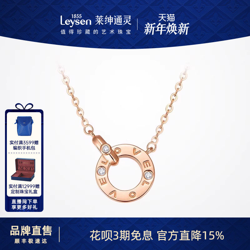 【新年礼物】莱绅通灵双环经典款18k金钻石项链女送礼 玫瑰金圆环