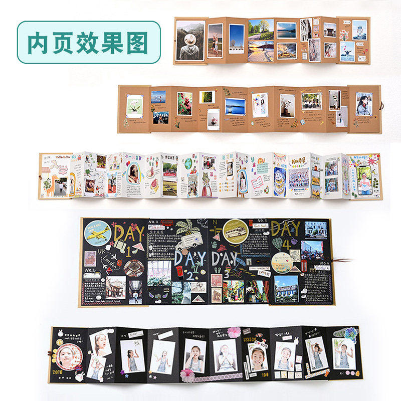 风琴折叠diy相册自制立体书手帐材料情侣成长纪念册空白折页绘本