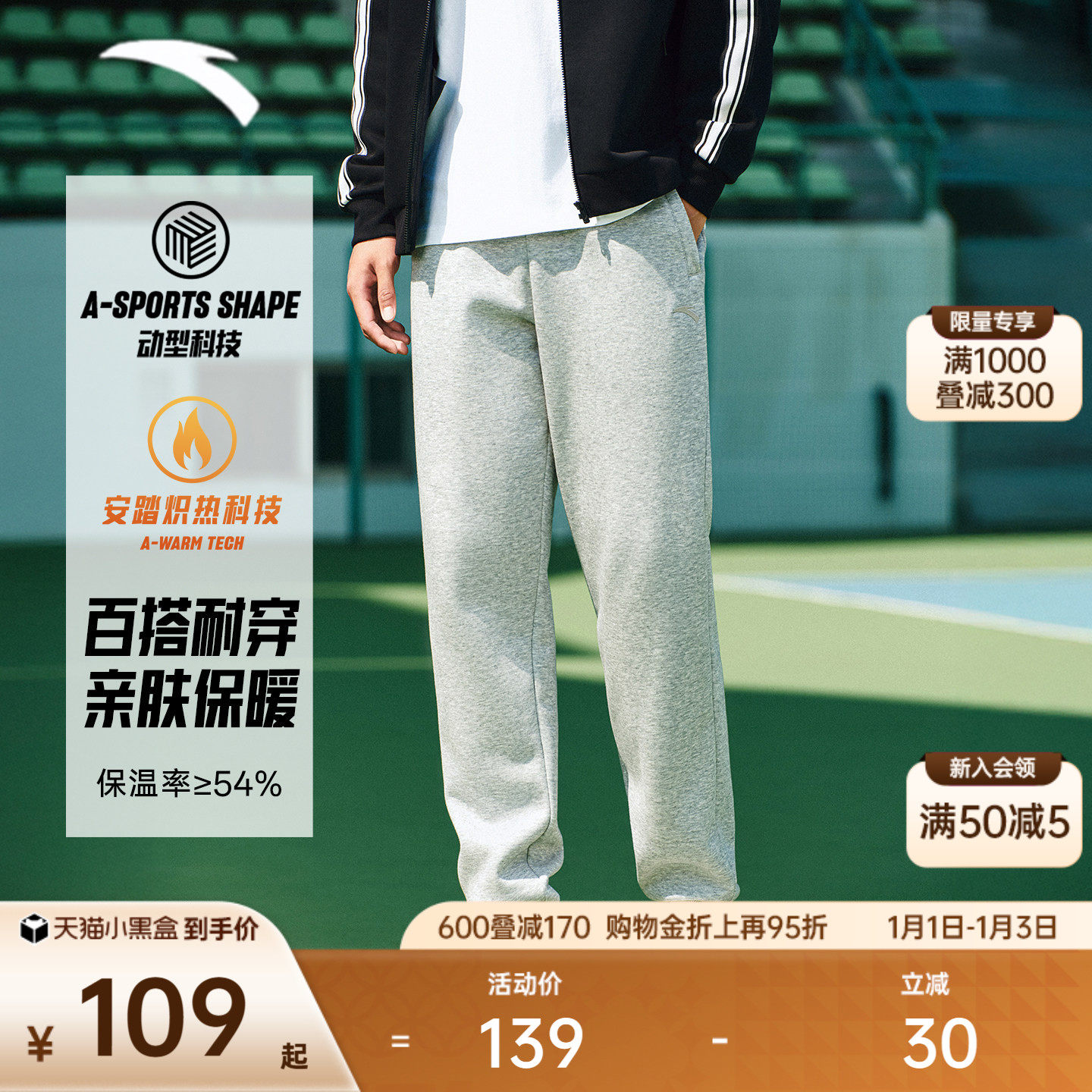 安踏针织运动长裤男冬季新款收口裤休闲宽松跑步训练裤百搭男裤子