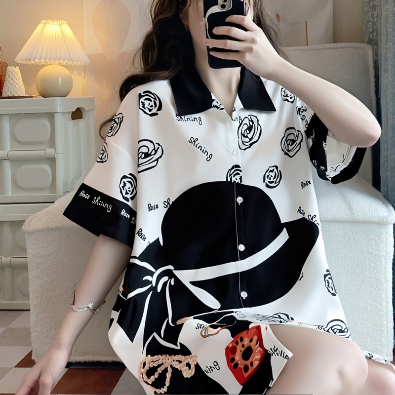 法式轻奢冰雪丝短袖睡裙夏天薄款宽松显瘦衬衫领可外穿家居服套装