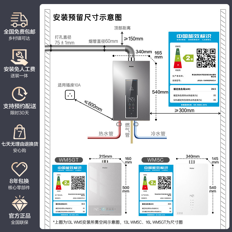 [政府补贴]海尔燃气热水器天然气13L16升WM5家用水伺服恒温款官方