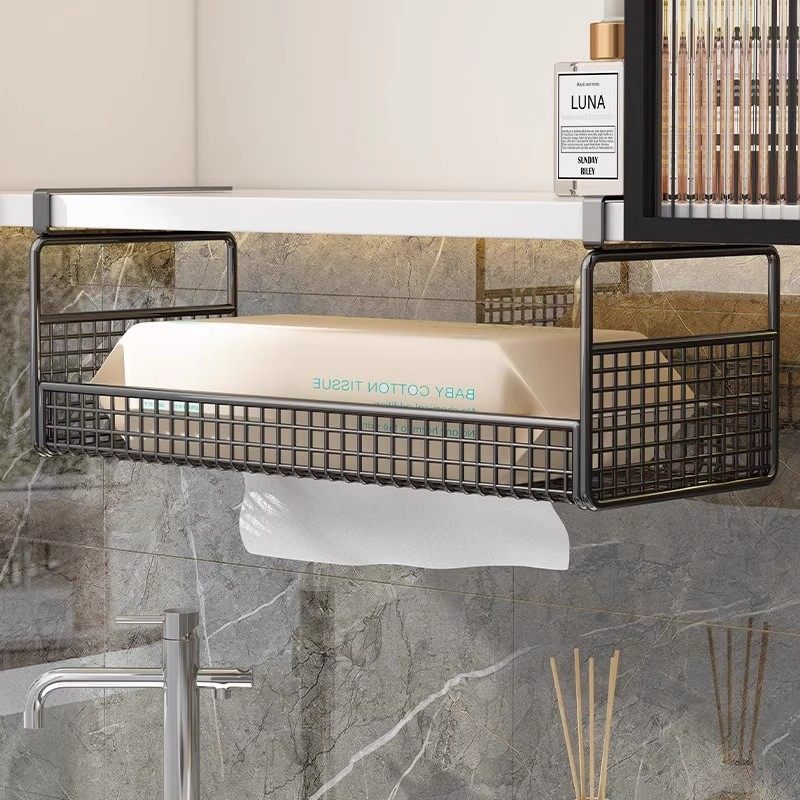 纸巾盒洗脸巾收纳盒下挂式置物架镜柜下抽纸盒倒挂盒悬挂厨房吊柜