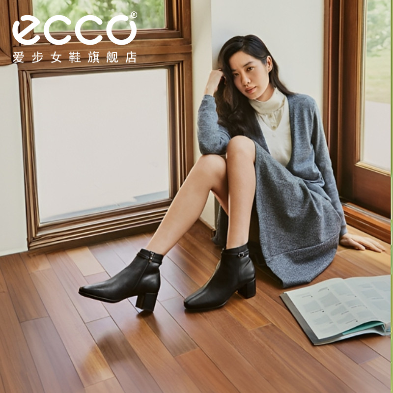 ECCO爱步靴子女 2025秋冬新款粗跟增高短靴切尔西靴 型塑290983
