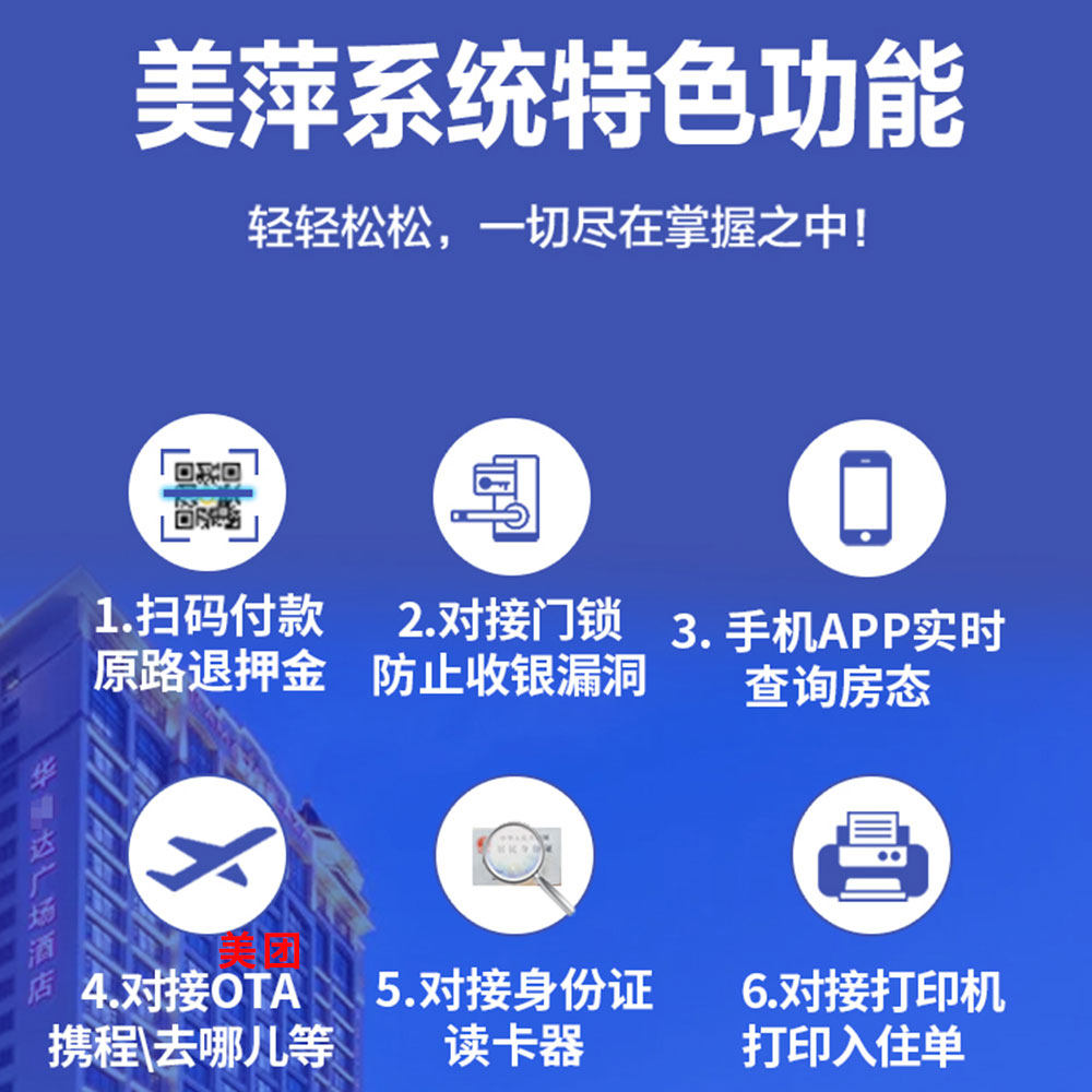 美萍酒店管理软件客房智能门锁登记账出租房公寓宾馆前台收银系统