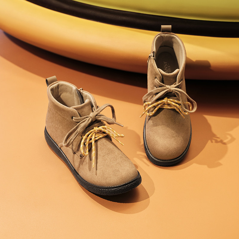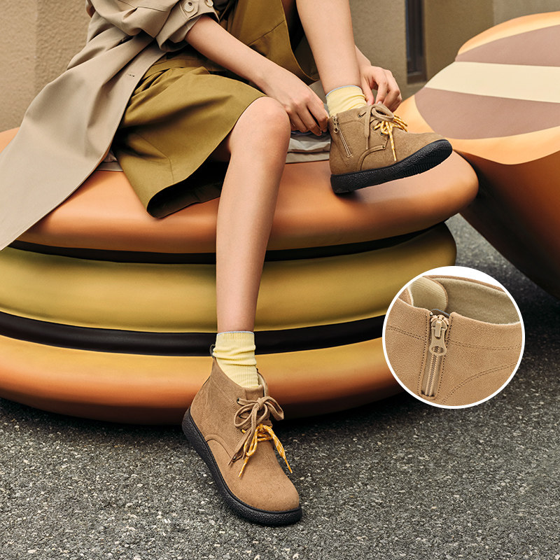 天美意复古厚底加绒切尔西短靴女鞋子瘦瘦靴时装靴皮靴2025冬新款
