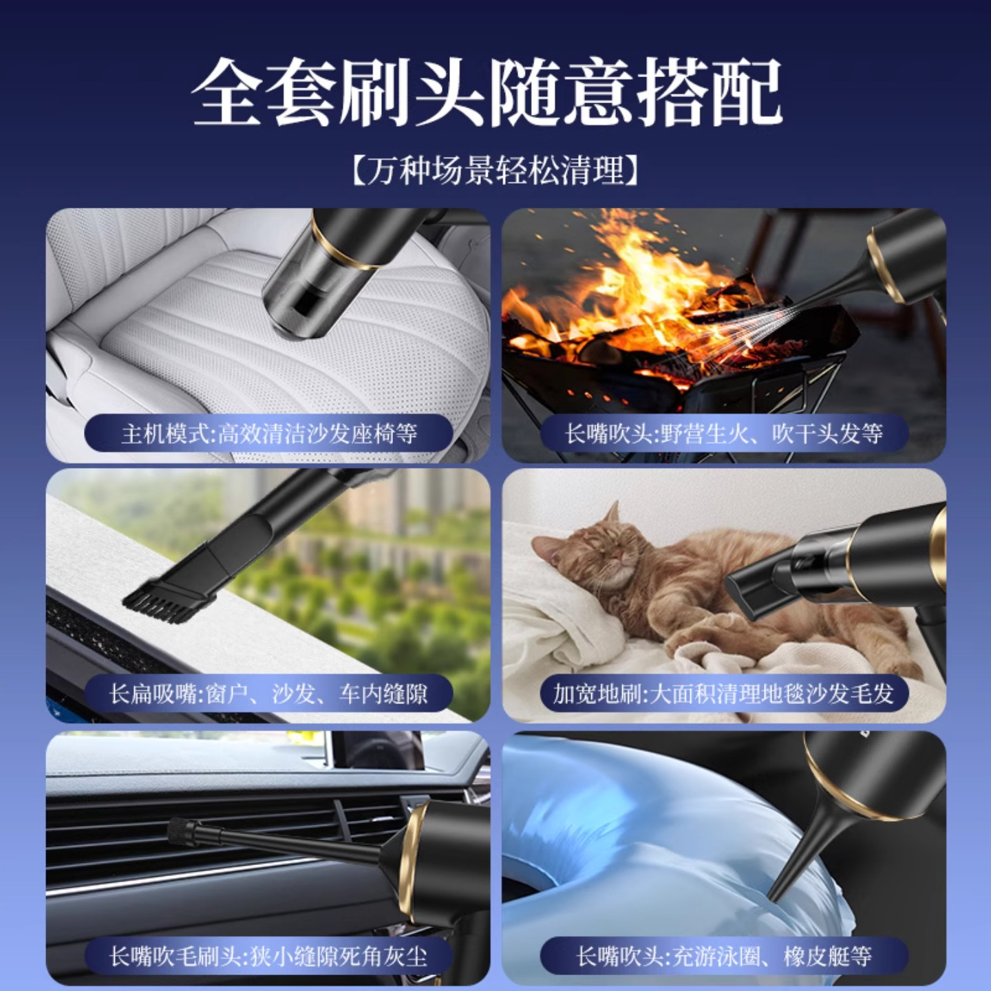 凌匠4合1车载无线吸尘器强力吸吹充抽汽车用家用小型机无刷大吸力