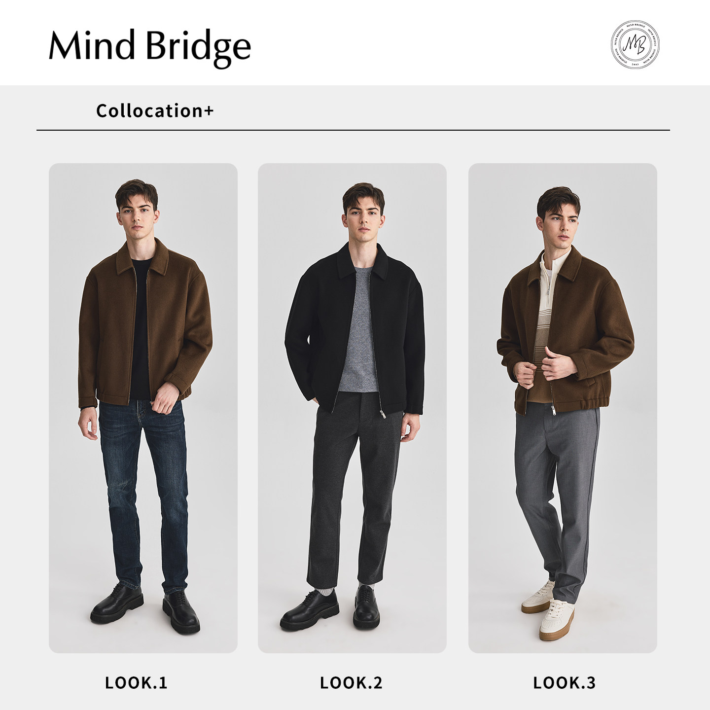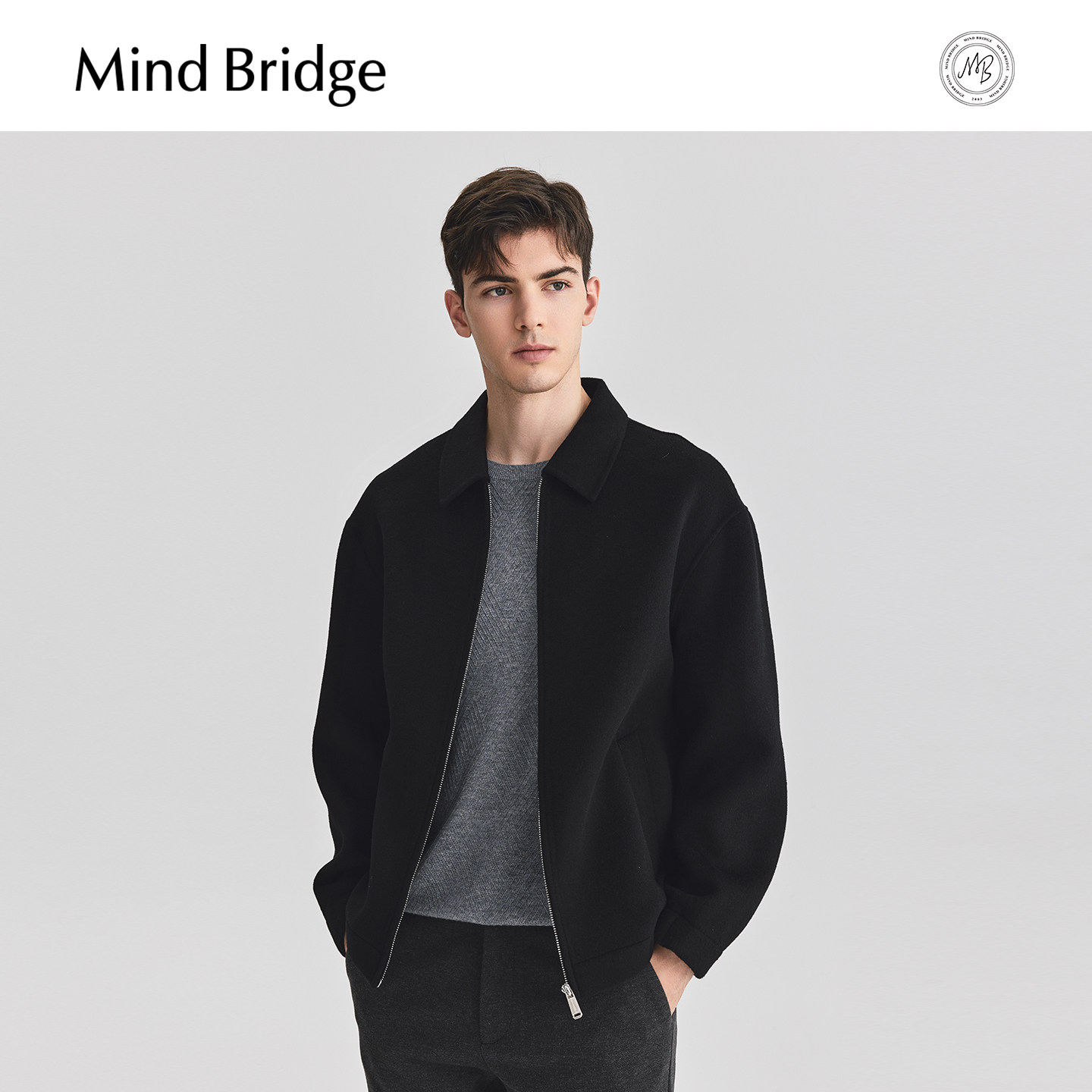 Mind Bridge男士短款毛呢外套2025年双面呢大衣冬季翻领夹克