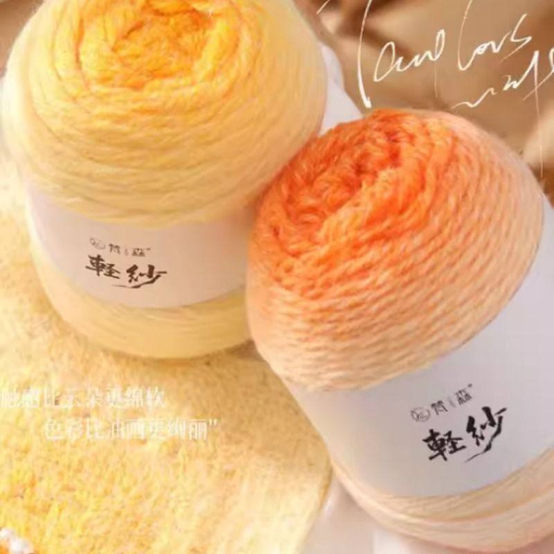 轻纱渐变长绒羽毛线七星毯渐变羊毛diy手工编织围巾帽子花束毯子