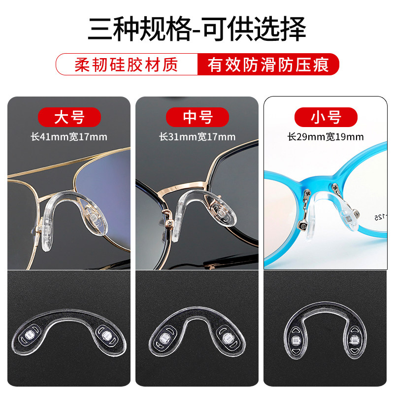 德国标准一体式U型眼镜鼻托硅胶连体配件防滑防压痕鼻垫防脱落垫