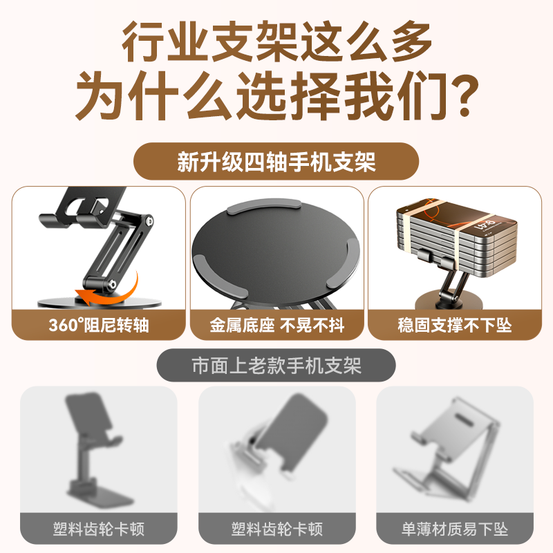 全金属手机支架2025新款桌面360度旋转手机架支架平板iPad支撑架子直播稳固合金多功能车载折叠便携通用