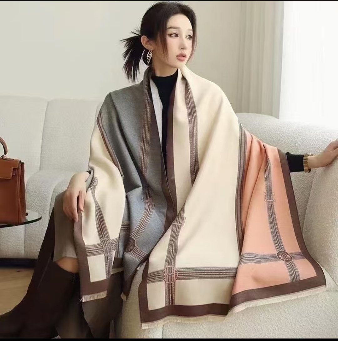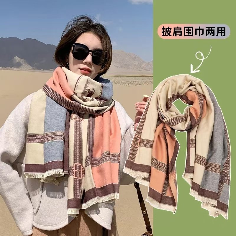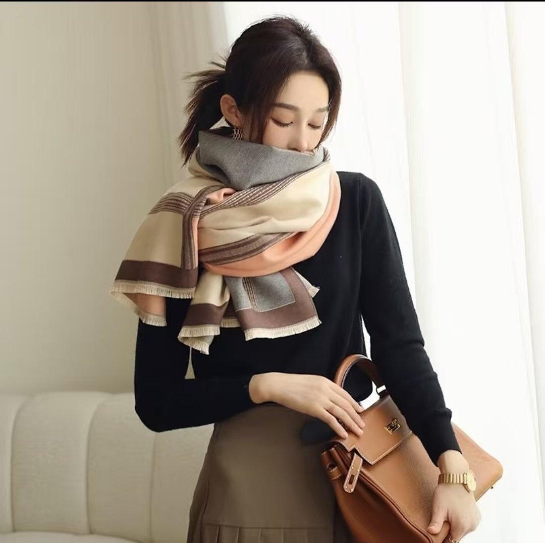 法国专柜100%羊绒围巾女2025秋冬新款空调房披肩毛毯保暖百搭围脖