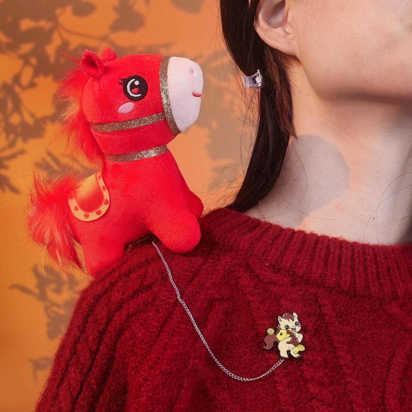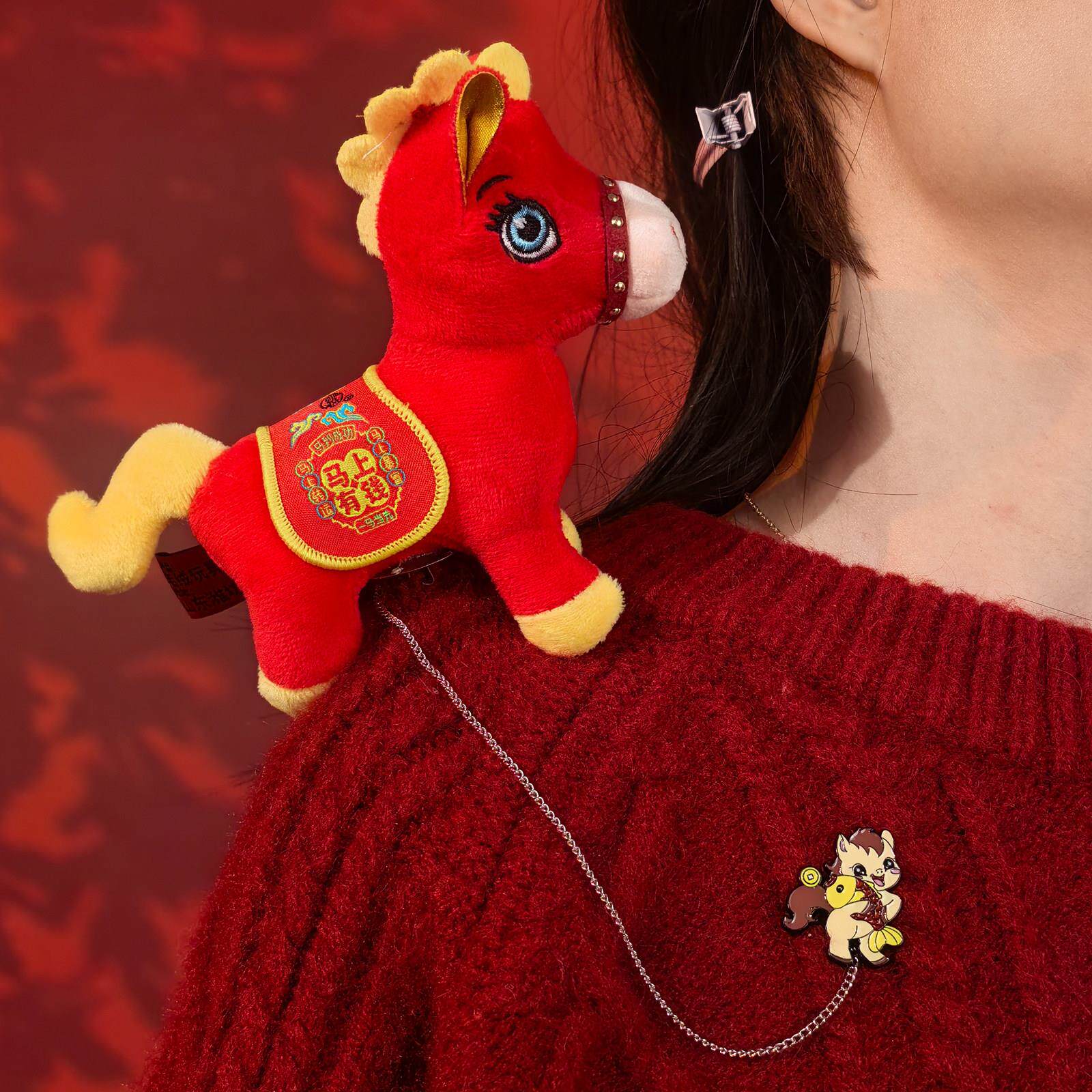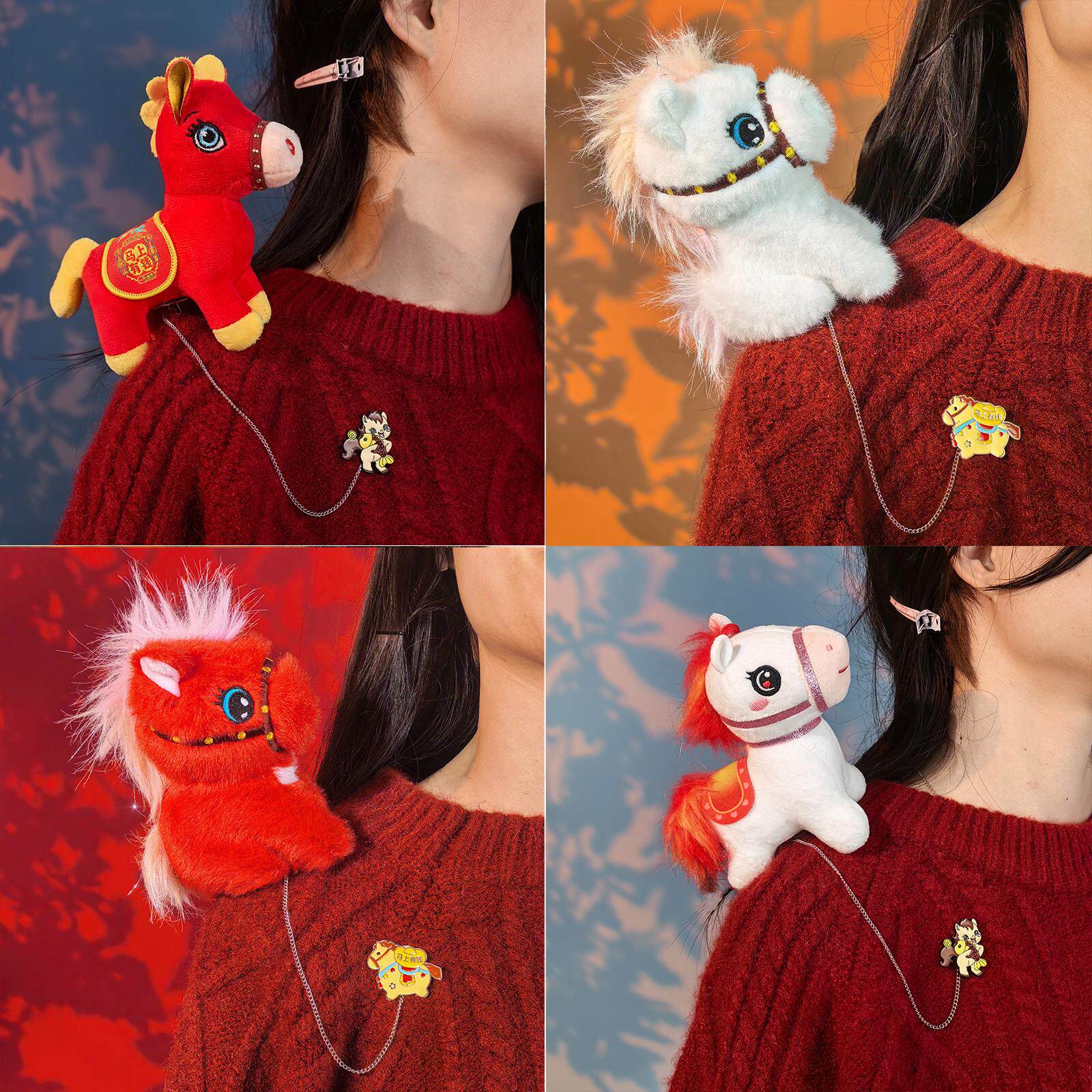 新款马年毛绒胸针元旦礼物卡通链条中国风春节衣服配饰员工礼品