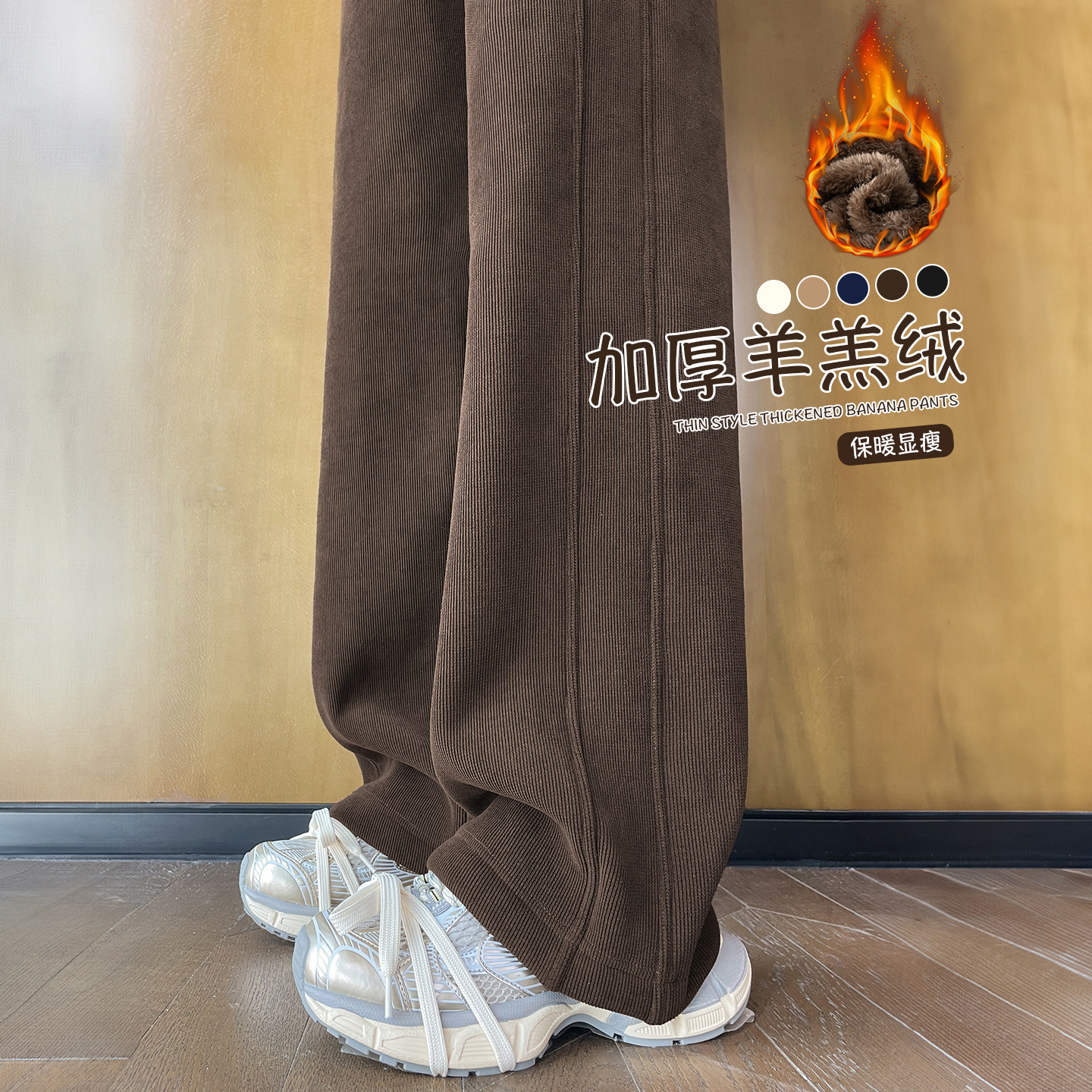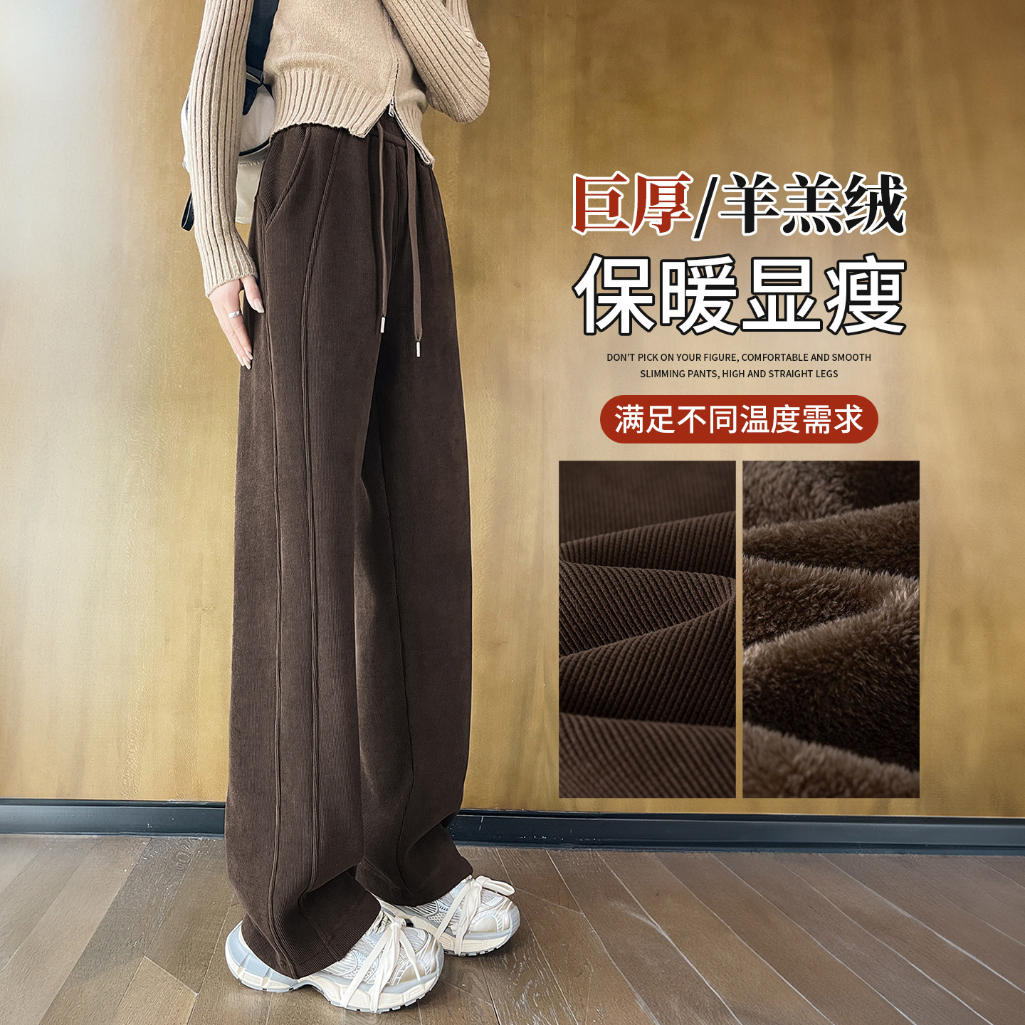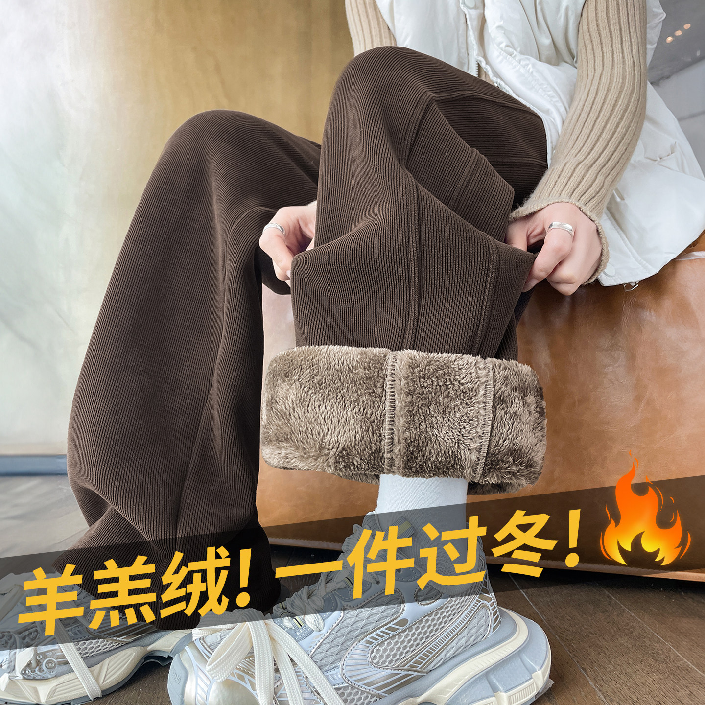 糯米裤女羊羔绒垂坠感软糯加绒加厚秋冬韩系慵懒松弛感阔腿裤TB