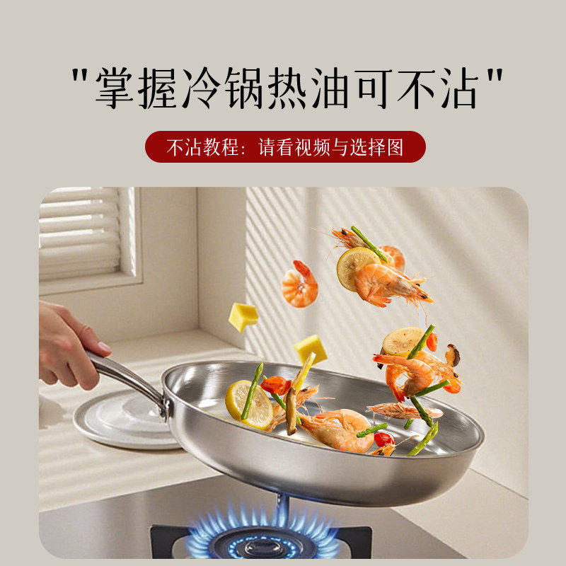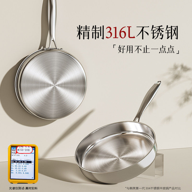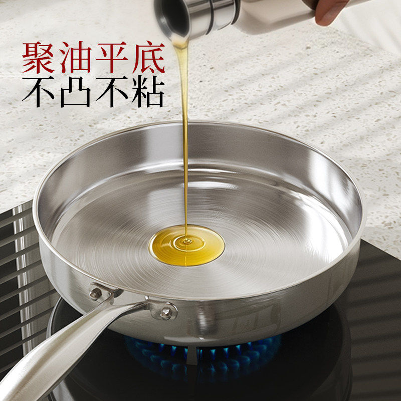 无涂层316不锈钢煎锅家用不粘锅 加厚食品级平底锅 电磁炉专用