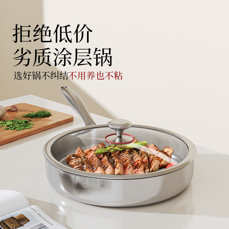 华际达平底锅316不锈钢不粘锅家用牛排煎锅炒菜炒锅无涂层电磁炉