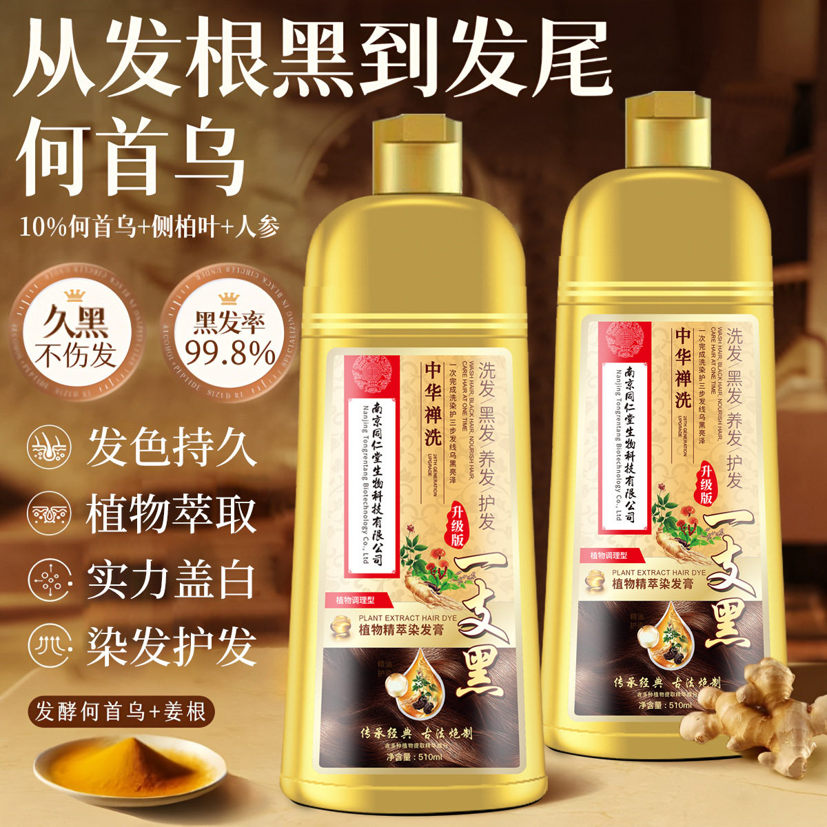 南京同仁堂染发剂纯不沾头皮染发膏植物官方旗舰店正品遮盖盖白发
