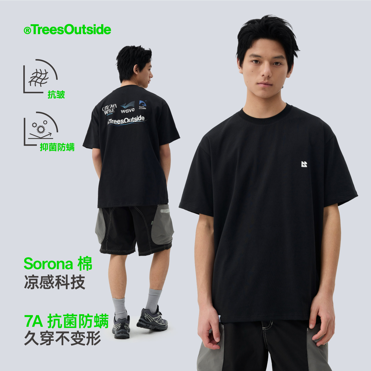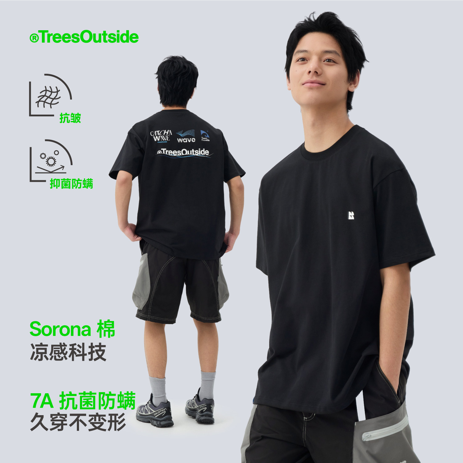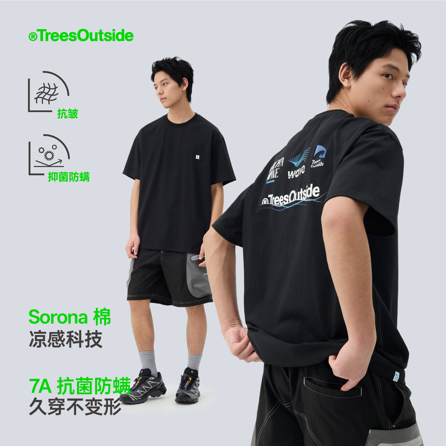 TreesOutside7A抗菌凉感抗皱26视觉组合印花T恤短袖2026新款