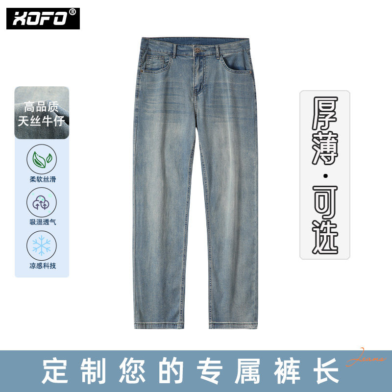 小柯XCOK竹节微喇牛仔裤男生高街vibe美式复古直筒休闲裤潮牌裤子