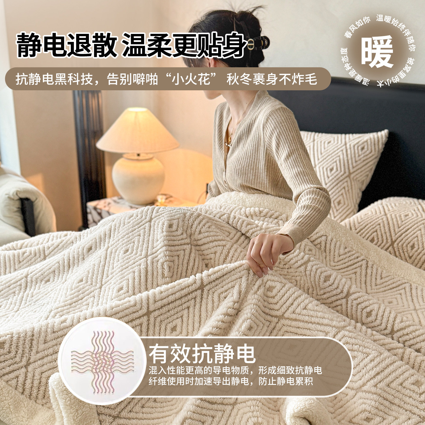 羊羔绒双层加厚保暖牛奶绒毛毯冬季办公室午睡沙发毯子珊瑚绒盖毯