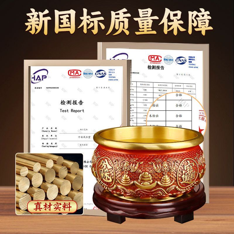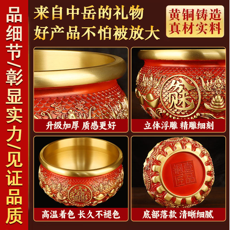 黄铜米缸聚财百福缸大号招财进宝聚宝盆创意手工礼物办公室小摆件