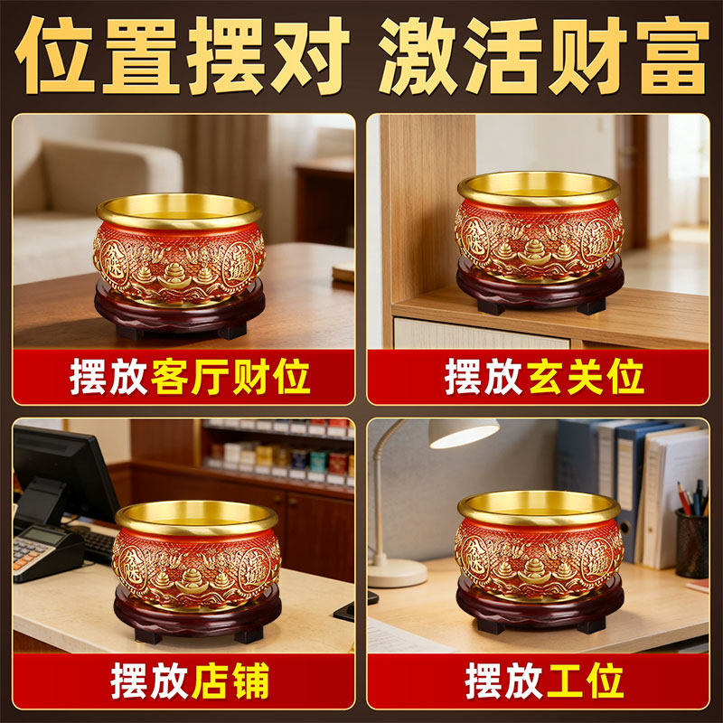 新款聚宝盆纯铜八方来财八福摆件红色中式招财客厅办公室装饰摆件