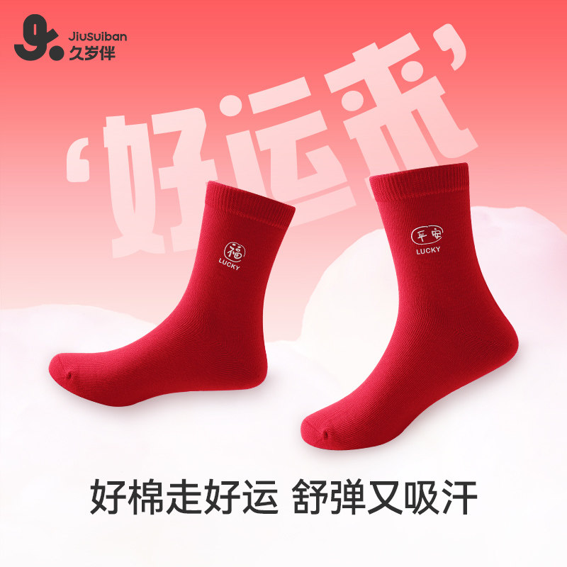 久岁伴儿童内裤袜子女童本命年大红色底裤组合新品中大童宝宝短裤