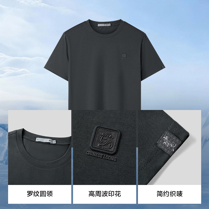 HLA/海澜之家中华龙系列短袖T恤2026春夏新款凉感高周波印花短t男