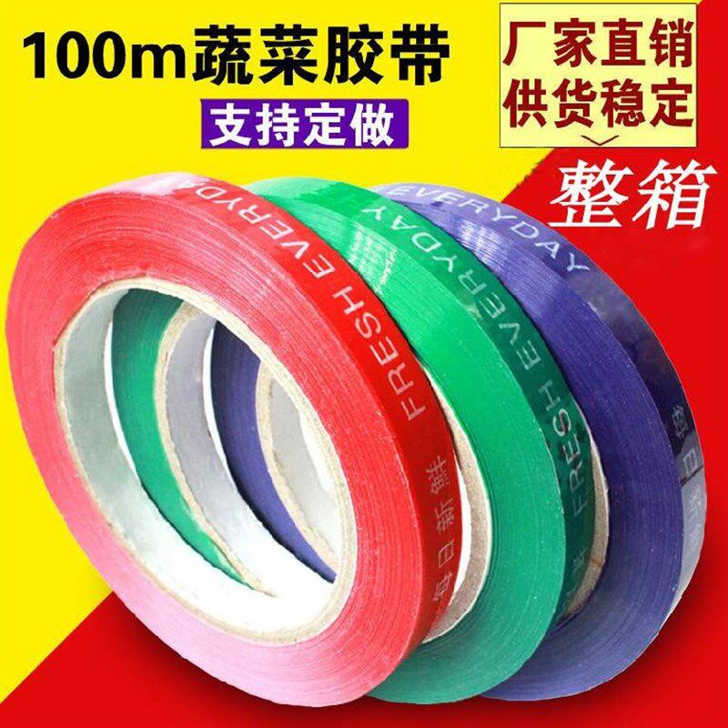 果彩色胶条蔬菜扎捆胶带商v场超市活动加K长生鲜新鲜胶纸白菜胶布