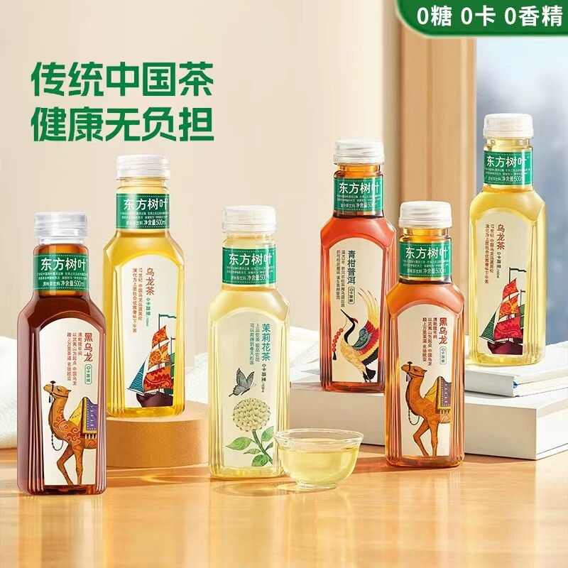 东方树叶茉莉花茶无糖0卡饮料500ml/900ml茶青柑普洱茶桂花大瓶装
